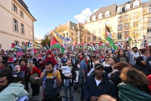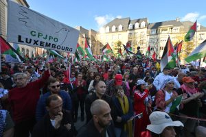 Ein Bilderbuch- und Traumwetter am ersten Herbstsonntag des Jahres. Die Sonne scheint, die Temperatur ist angenehm. Auf der place de l’Europe vor der Philharmonie hat sich bereits eine Stunde vor Beginn der Demonstration eine beachtliche Menge versammelt. Eine Frau aus dem Organisationsteam der „Luxembourg Coalition for Palestine“, einem Kollektiv mehrerer Vereinigungen der Zivilgesellschaft, nennt 1.200 bis 1.500 Teilnehmer. Doch mehr und mehr Menschen schließen sich der Menge an. Gegen Ende sind es mehrere Tausend, von 5.000 bis 6.000 ist gar die Rede, die gegen den Albtraum demonstrieren, der sich seit fast zwei Jahren in Gaza abspielt.