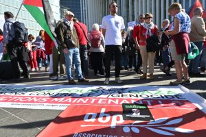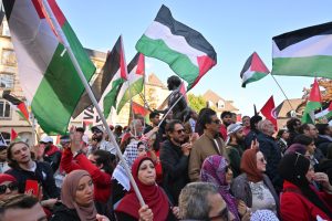 Andere sind mit palästinensischen Kufiyas gekommen. Wer noch keine hat, konnte eine vor Ort an einem Stand an der place de l’Europe erstehen. Für die Demonstranten reicht eine Anerkennung des Palästinenserstaates nicht aus (seit 22. September sind es 153 Staaten, die Palästina anerkennen). „Sie wird die Hungersnot in Gaza und den Völkermord nicht beenden“, betont Dalia Khader von „Collectives for Palestine“, die selbst Palästinenserin und die erste Rednerin auf der place Clairefontaine ist. Sie weist darauf hin, dass Israels Premierminister Benjamin Netanjahu erklärt hat, dass es keinen palästinensischen Staat geben werde.