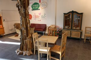 Es herrschen in jede Richtung Abhängigkeiten. Nicht nur darauf will Teranga aufmerksam machen. Die Initiative von „SOS Faim“ will dazu animieren, ein anderes Bewusstsein für alles rund um Ernährung zu schaffen. Da ist es nur folgerichtig, dass der Besucher gleich beim Betreten des Hauses zumindest, was die Innenarchitektur betrifft, im Thema ist.