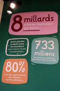 Die großen, farbig abgesetzten Informationen an der Wand gegenüber der Eingangstür umreißen die Problematik und fördern Erschreckendes zutage. 80 Prozent der Hungerleidenden sind an der Produktion von Nahrungsmitteln Beteiligte wie Bauern, Hirten, Fischer und ihre Familien. Zwar ist von den geplanten Fachvorträgen, Workshops und Konferenzen zum Thema, die hier stattfinden sollen, noch nichts zu sehen.