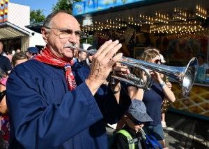 Und für das interessiert sich auch Sonja Heinisch, die sich darüber ärgert, dass andere ihr die Sicht auf die Schafe versperren. Für die – bei aller Begeisterung – der Glacis bei mindestens 28 Grad und lauter Musik ohnehin nicht der ideale Ort zu sein scheint. Doch traditionell führen sie bei der großen „Ouverture“, gemeinsam mit dem Limpertsberger Musikverein, den Verantwortlichen der „Fouer“ sowie den Mitgliedern des hauptstädtischen Gemeinderats und vielen Gästen, einen kleinen Umzug über den Glacis an. „Ich komme jedes Jahr am ersten Tag hierher. Es ist eine Tradition“, erklärt Sonja Heinisch und meint noch, dass sie sich auf den gebackenen Fisch im Anschluss freut. Nur kurze Zeit später singt sie bei „Et ass Kiermes am Duerf“ mit.