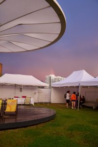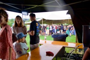 Dann, endlich, der Höhepunkt: Der erste Act betritt die Bühne. Die zu diesem Zeitpunkt noch eher bescheidene Menge traut sich zaghaft an die Bühne heran, wo die junge Künstlerin Emily Grogan, Gewinnerin des diesjährigen Open Call der Gemeinde, mit ihrer Band eine grandiose Performance abliefert. Hinter den Kulissen beobachtet das Team gespannt. Es sind diese Momente, die den Stress und die langen Stunden der vergangenen Monate lohnenswert machen.