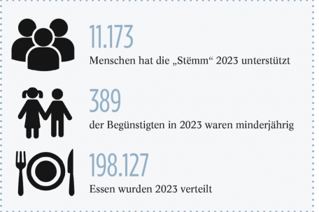 An all diese Menschen wurden im vergangenen Jahr 198.127 Mahlzeiten in den drei Sozialrestaurants in Esch, Ettelbrück und in der Hauptstadt verteilt (160.099 in 2022). Um der steigenden Anfrage gerecht zu werden, wurde im Februar 2023 ein neues Sozialrestaurant in Ettelbrück eröffnet. Dennoch mussten die Mahlzeiten in Hollerich auf eine pro Kopf reduziert werden. „Vorher gab es ein Essen und wer noch Hunger hatte, bekam Nachschlag. Das ist aktuell nicht mehr möglich. Aus platztechnischen, personellen und finanziellen Gründen können wir nicht mehr mit der Entwicklung Schritt halten“, so der Präsident der „Stëmm“, Marcel Detaille.