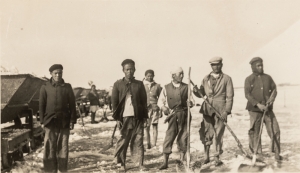 Les hommes partis au front, les femmes sont appelées à participer à l’effort de guerre. Elles jouent un rôle fondamental en devenant postières, conductrices de tramway. Elles sont même „munitionnettes“. Il existe des photos exceptionnelles, les montrant travaillant dans des usines de fabrication d’obus. Contraste saisissant entre une image cliché de la femme en famille, qui vient bousculer la photographie de femmes fabriquant des armes de guerre, comme s’il s’agissait finalement d’un quelconque produit manufacturé. En 1918, elles seront au nombre de 420.000 dans ces usines. A ces images, on mesure la tragédie et la farce dans lesquelles les êtres humains sont parfois embarqués. Une autre aide, assez méconnue, est mise en lumière, celle des travailleurs indochinois, recrutés par le ministère des Colonies, en 1915, dans les régions pauvres de l’Union indochinoise – ils seront 90.000. En 1931, le recours à ces travailleurs se répète. Le gouvernement désire recruter 300.000 travailleurs dans ses colonies, dont 20.000 venus d’Indochine. L’armistice signé l’année suivante stoppe le processus. Mais les recrutés sont répartis au sein de la zone libre, comme main-d’œuvre à bas prix. On retrouve des Indochinois en Camargue, dans les Salines.
