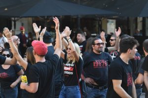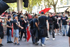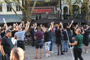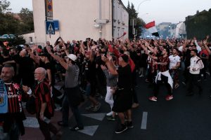 „AC Milan, AC Milan, AC Milan“ hallt es aus Hunderten von Kehlen. Nachdem sich die Fans des mailändischen Traditionsvereins bereits am Nachmittag auf der place d’Armes auf das Spiel eingestimmt haben, bewegt sich der Pulk in rot-schwarz nun via route d’Arlon in Richtung Stade Josy Barthel. Die Schlachtengesänge sind beeindruckend und vielfältig. Sie kommen aus Kehlen, die die letzten Stunden gut geölt wurden. Die Stimmung ist hervorragend. Alles ist friedlich und vor allem sehr diszipliniert. Bis zum Spiel sind es noch gut 90 Minuten.