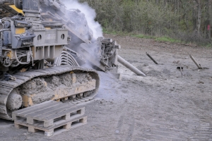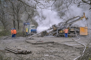 Derzeit laufen Bohrungen, um Beton in das Gelände einzuspritzen. 46 Bohrungen und 43 Einspritzungen sind bis jetzt realisiert und 340 Kubikmeter Beton eingespritzt. Gleichzeitig werden große Stahlanker eingebracht, weil der Beton in dem bergigen Gelände nicht ausreicht, um es im Gleichgewicht zu halten. Diese Arbeiten sind das Resultat zahlreicher topografischer Untersuchungen im Vorfeld.