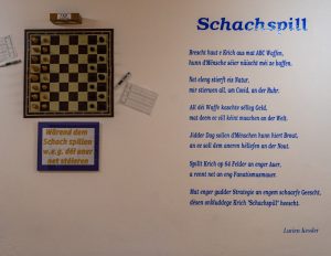 Im Verein wird sehr großen Wert auf die Nachwuchsarbeit gelegt, so gibt es dreimal wöchentlich eine Schachschule (jeweils dienstags, donnerstags und samstags von 15.00 bis 18.00 Uhr), zusätzlich werden zahlreiche Ateliers organisiert. Selbst während des Lockdowns wurde weiter trainiert, aber draußen. Im September beginnen dann auch wieder die Meisterschaften. Der Schëfflenger Schachclub nimmt mit sieben Mannschaften teil und ist auch in der höchsten Klasse, der Nationaldivision, vertreten. Bei Kindern liegt Schach voll im Trend, woran die Netflix-Serie „Das Damengambit“ nicht ganz unschuldig sein dürfte. In dieser Serie liegt der Schwerpunkt auf dem „Nie-Aufgeben-Prinzip“, also bis zum Ende kämpfen, bis die Partie entschieden ist. „Schach schult das unabhängige Denken, aber man lernt auch, wie man verliert und sich danach wieder aufrappelt“, erklärt Präsident Kessler. Barrieren gibt es beim Schach keine. Es ein universelles Spiel, welches keine Sprachkenntnisse erfordert.