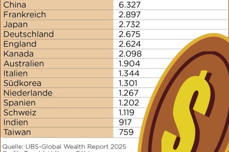 Unabhängig von der Zahl der Millionäre hat sich auch das Vermögen in ihrem Besitz, je nach Weltregion, 2024 unterschiedlich entwickelt. So ist der Besitztum in den USA und in Osteuropa um rund 12 Prozent gewachsen, in China um 3,4 Prozent, während er in Westeuropa um 1,5 und in Lateinamerika um 4,3 Prozent rückläufig war.