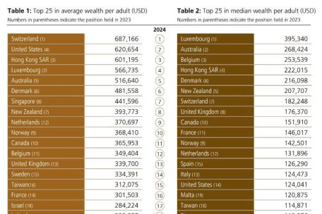 Bei der durchschnittlichen Vermögenshöhe pro Erwachsenem liegen die Schweiz (687.166 Dollar), die USA und Hongkong mit mehr als 600.000 Dollar an der Spitze. Auf dem vierten Platz weltweit folgt der durchschnittliche Luxemburger mit einem Besitz von 566.735 Dollar.