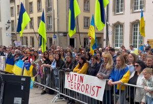 Geschätzt 150 Menschen, viele davon wohl ukrainischer Herkunft, haben sich am Morgen in der Hauptstadt vor der Chamber versammelt, wo per Live-Video die Veranstaltung ebenfalls zu sehen und zu hören war. „LUkraine“, eine Vereinigung der Ukrainerinnen und Ukrainer in Luxemburg, hatte dazu aufgerufen.