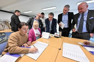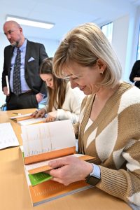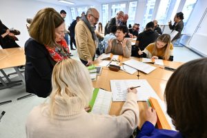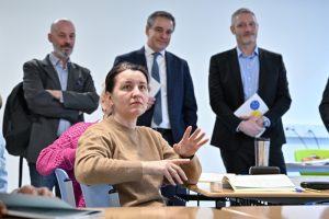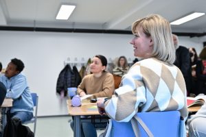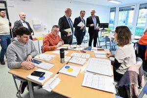Zwei der Klassen in dem Gebäude bekommen Besuch von Bildungsminister Claude Meisch (DP) und der Presse. Sie wollen sich die Anwendung eines neuen Wörterbuches in der Praxis ansehen, das unmittelbar vor dem Besuch offiziell vorgestellt wurde. Es umfasst die Sprachen Ukrainisch, Luxemburgisch und Französisch. In dem ersten Klassenraum herrscht leises Getuschel, als der Minister gemeinsam mit einigen Pressevertretern und weiteren Männern den Raum betritt. Mit Sätzen wie „Je mange une glace dans la classe“ üben die zwei Lehrerinnen dann mit der Klasse das Aussprechen von ähnlich klingenden Wörtern und das Bilden von Sätzen, in denen diese enthalten sind. Auf der Suche nach den jeweiligen Wörtern blättern die Französischschüler in dem neuen Wörterbuch. Viele von ihnen sind Geflüchtete aus der Ukraine, doch im SFA werden auch Menschen mit anderer Muttersprache, zum Beispiel Arabisch oder Farsi, unterrichtet.