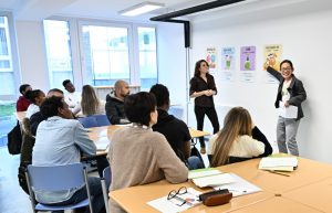 „Ich esse im Klassenzimmer ein Eis“: Dieser Satz enthält in der deutschen Sprache klar voneinander unterscheidbare Wörter – im Französischen ähneln sich allerdings zwei davon, vor allem, wenn man sie ausspricht. Die Aussprache von „glace“ („Eis“) und „classe“ („Klasse“) ist am Freitag eines der Themen im Französischunterricht im „Service de la formation des adultes“ (SFA) des Bildungsministeriums. Unterrichtet werden die Lernenden im „Bâtiment D“, einem Containerbau auf dem Kirchberg. Am Freitag ist dort jedoch kein normaler Unterrichtstag.