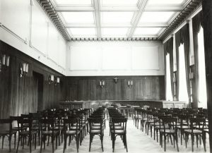 Eingeweiht wurde das Rathaus und somit auch der Fest- und Sitzungsaal am 15. August 1937. Einen Monat vor dem Flughafen Esch. „Das neue Rathaus soll der aufstrebenden Stadt Esch würdig sein“, wird der damalige Bürgermeister Hubert Clément in einem Buch von Abbé Flies zitiert.