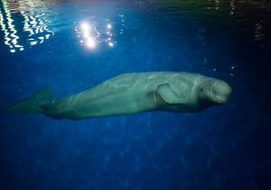 Belugawale werden auch Weißwale genannt. Die Meeressäuger werden zwischen drei und sechs Metern lang und wiegen bis zu 1000 Kilogramm. Sie können (in der Natur) bis zu 50 Jahre alt werden. Ihr Lebensraum ist das arktische und subarktische Meer. Sie ernähren sich vor allem von Fischen und Krustentieren.