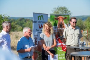 Es sind Nutztiere eines Landwirtschaftsbetriebs aus Bergem in der Gemeinde Monnerich, die an zehn Standorten (darunter der Lallingerberg) in den Gebieten der Minett-Unesco-Biosphäre unter der Aufsicht eines Schäfers für die Entbuschung der Trockenwiesen sorgen – also von ertragsarmen, aber meist sehr artenreichen Flächen. Produzent Pol Kail und sein Bruder beteiligen sich seit 2017 an diesem Projekt der ANF. Für gewöhnlich geht es im Mai mit der Wanderbeweidung los, jedes Jahr wird an einer anderen Stelle damit begonnen. „Jeder Standort wird durchschnittlich zweimal beweidet“, erklärte Pol Kail.