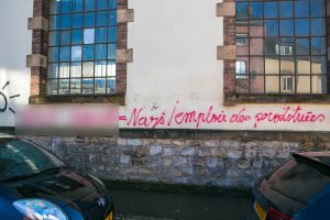 In die Wand eines Geschäfts in der rue Chimay wurde bereits am Samstag das Wort „Nazi“ geritzt. In der Nacht von Dienstag auf Mittwoch kam es zu weiteren solcher Fälle. Auch ein Firmengebäude in der avenue John F. Kennedy auf Kirchberg, die Bushaltestelle auf der place de Nancy und auf der place de France in Merl, ein Mehrfamilienhaus in der rue Marie-Adelaïde, ein Firmengebäude in der rue de Hollerich und eine Schule in der rue de l’Aciérerie wurden beschmiert.
