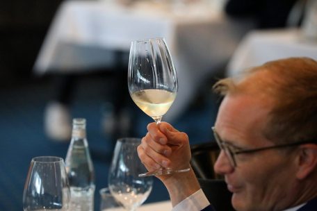 „Professionelle Degustation braucht Konzentration“ und kein Parfüm, erklärt der Belgier. Im Verkostungssaal gibt es keine Düfte, um die Nasen der Juroren nicht vom Wein abzulenken. Sogar die Sommeliers, die mit den nächsten Proben zu den Tischen huschen, bewegen sich beinahe geräuschlos.