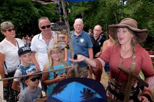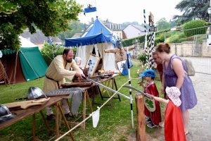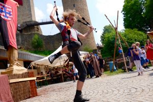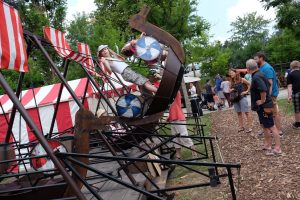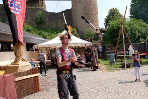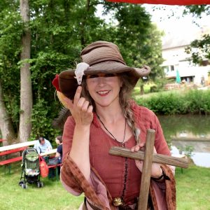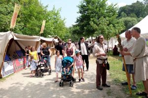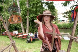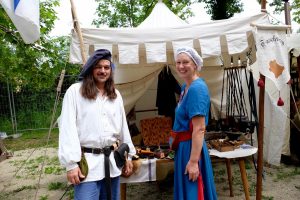So verging die Zeit dann auch wie im Flug. Der schöne Platz lud zum langen Verweilen ein. An den Ständen wurde allerlei an Speis und Trank angeboten. So ließ es sich bei dem schönen Wetter sehr gut aushalten. Für die Bespaßung der Kinder war ebenfalls bestens gesorgt. Ob Bogenschießen, Wikingerboot-Schaukel oder andere Spiele: Alles hatte einen speziellen Mittelalter-Touch.