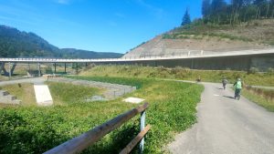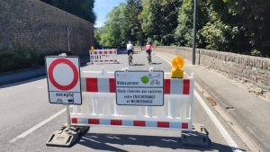 Die Achterbahnfahrt beginnt kurz nach der bei Wiltz gelegenen „Tutschemillen“, die wir uns als Treff- und Startpunkt ausgeguckt hatten. Durch Wiltz geht es zunächst ein Stück durch den Straßenverkehr, doch kurz nach der „Hauptstadt des Öslings“ wird der Radfahrer dafür entschädigt, wenn es auf dem PC20 auf der früheren Bahnstrecke durch so manchen Tunnel geht. Auch hier geht es bergauf, doch die Steigungen sind konstant und gehen nie über 5 Prozent hinaus. Allerdings muss man auf den Gegenverkehr achten, denn an diesem Samstag sind viele Radfahrergruppen unterwegs. Meist auf E-Bikes oder Rennrädern.