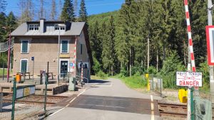 Für viel mehr als eine Foto-Pause reicht es nicht, denn es liegen noch einige Kilometer vor uns. Und ein echter Nervenkitzel mit dem Bahnübergang in Enscheringen vor Wilwerwiltz. Der ist mit schmalen Fahrradreifen richtig schwer zu überfahren. Ein Warnschild für Radfahrer könnte auf die Sturzgefahr hinweisen, es fehlt aber. Auf der „Piste Cyclable du Nord“ (PC 21) geht es größtenteils im Schatten an der Klierf entlang in Richtung Kautenbach. 79 Kilometer und 780 Höhenmeter zeigt der Radcomputer an. Es ist nicht mehr weit, doch die bergige Waldlandschaft lässt nichts Gutes erahnen. Und tatsächlich, bis zur rund 15 Kilometer entfernten „Tutschemillen“ ist eine regelrechte Achterbahnfahrt zu absolvieren, mit kurzen, und zum Teil recht steilen Kletterpassagen.