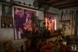 Das Innere gleicht dem Abstellraum eines Antiquitätenhändlers. Der Raum, in dem sich heute das Stued-Theater befindet, war vor Jahrzehnten die Werkstatt der Stellmacherei. Etliche Instrumente aus früheren Zeiten hat Georges Urwald, der heutige Besitzer der alten Gemäuer, an Ort und Stelle gelassen. Dazu kommen etliche Gegenstände, die er über die Jahre auf Flohmärkten zusammengetragen hat.