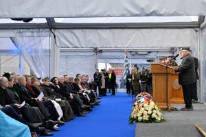 Höhepunkt der Feier waren die Kranzniederlegung für die gefallenen Soldaten und die 21 Salutschüsse. Wegen der schlechten Witterungsverhältnisse war der geplante Überflug des Militärtransporters A400M abgesagt worden. „Es ist unsere Pflicht, niemals diejenigen zu vergessen, die ihr Leben für unsere Freiheit und unsere fundamentalen Werte gegeben haben“, fasste Großherzog Henri die Essenz der etwas mehr als einstündigen Zeremonie zusammen und sprach den Amerikanern den Dank der Luxemburger Bevölkerung aus. Das hatte zuvor bereits Luc Frieden getan: „Sie folgten dem Ruf, um ein Land zu verteidigen, das sie nicht kannten, und Menschen zu befreien, die sie nie getroffen haben.“ EU-Parlamentspräsidentin Roberta Metsola drückte ihre Hoffnung aus, dass „der amerikanische Mut von damals Inspiration für Europa und die Ukraine im Kampf gegen die Aggression sein kann“. Jedenfalls habe sie Hoffnung, dass die USA genau wie vor 80 Jahren weiterhelfen, den Frieden auf den alten Kontinent zurückzubringen.