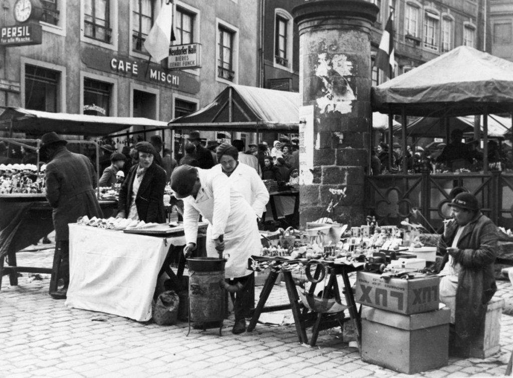 Die „Péckvillercher“ und Töpfe, die vor 1925 meistens in Nospelt oder in der Rosporter Steingutindustrie hergestellt worden waren, wurden von Jahr zu Jahr bunter. Auch Eifeler Steingut wurde angeboten. Die mit Liebessprüchen und Lebensweisheiten versehenen Tassen verschwanden allerdings kurz nach dem Ersten Weltkrieg aus dem Verkauf, ebenso wie das Porzellan. Beide Waren tauchten aber 1922 für kurze Zeit wieder auf.