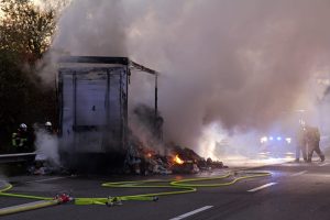 Ein Auflieger eines Lastwagens fing am Montagabend auf der A1 in Richtung Trier Feuer. Die Autobahn musste für rund anderthalb Stunden gesperrt werden, der Materialschaden ist hoch.