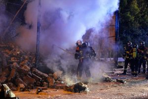 Bei Ankunft der ersten Rettungskräfte hatte sich der Brand bereits auf den kompletten Auflieger und dessen Beladung, diverses Stückgut, ausgebreitet. Mehrere Einsatzteams, die mit Atemschutz ausgerüstet waren, versuchten, das Feuer zu löschen. Das auf Paletten verteilte Stückgut und dessen Kartonagen erschwerten den Einsatz jedoch. So musste die Ladung per Hand vom Auflieger auf die Autobahn abgetragen werden, um dort dann vollständig abgelöscht zu werden. Im Anschluss an die Löscharbeiten musste eine spezialisierte Firma mit Bagger und Lastwagen anrücken, um das Brandgut von der Fahrbahn zu entfernen.