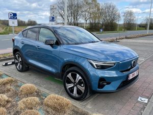 Bedenkenlos sollte man sich auch nicht auf eine weite Reise begeben, denn wer Tempo liebt, muss sich beim C40 auf ein dramatisches Absinken der Reichweite gefasst machen; hier ist der C40 kaum anders aufgestellt als jedes andere E-Auto. Die 78-kWh-Batterie erlaubt eine theoretische Reichweite von 440 km, was einen Durchschnittsverbrauch von knapp 18 kWh/100 km voraussetzen würde, andererseits gibt man den WLTP-Verbrauch mit 20,8 kWh pro 100 km an, also Vorsicht beim „Gasgeben“, trotz oder gerade wegen des überragenden Temperaments dieses immerhin 2.160 kg schweren Elektrikers. Am Ende unserer Testfahrt nach fast 450 km, mit vernünftigem Tempo nicht über 110 km/h und dreimaligem Zwischenladen – einmal an einer Chargy-Säule, einmal an einer 60-kW-Station einer Konkurrenzmarke in Belgien und einmal an einer öffentlichen Ladestation mit CCS-Stecker auf der E411, errechnete der Bordcomputer einen Durchschnittsverbrauch von 22,1 kWh/100 km. Damit lässt sich bequem und souverän durch die Gegend cruisen. Schneller geht’s auch, dann kennt die Begeisterung keine Grenzen. Die Reichweite wohl!