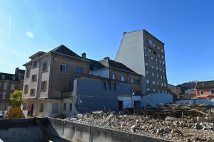 Die Abrissarbeiten am früheren Hauptsitz der Editpress-Mediengruppe in der Escher Kanalstraße gehen jetzt im rasanten Tempo weiter. Zunächst wurde Ende September der Seitenflügel dem Erdboden gleichgemacht. Der Anbau war 1978 errichtet worden und beherbergte bis 2001 die Druckerei. Seit Donnerstag nun steht nichts mehr vom hinteren Teil des Zeitungshauses. Dort waren u.a. die Redaktionen von Tageblatt und Le Quotidien untergebracht und im hinteren Teil das frühere Papierlager.