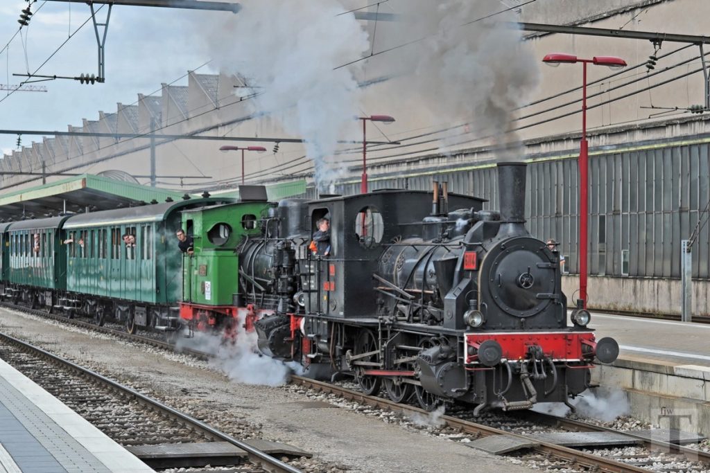Die 1891 von der „Elsässischen Maschinenbaugesellschaft“ produzierte Dampflok AL T3 6114 des „Train 1900“ 2009 im Bahnhof Luxemburg