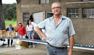Majerus zeigt uns den gut gefüllten Lagerraum in einer ehemaligen Scheune. Im Mezzanin harren hunderte leere Bananenkisten ihrer weiteren Bestimmung. Vollgepackt sind hingegen bereits tausend andere im Erdgeschoss. Sie werden am Nachmittag in den zweiten Lkw geladen. Durch ihre Ausmaße eignen sich diese von einer großen Supermarktkette gespendeten, strapazierfähigen Kartons bestens dazu, einen Anhänger ohne Zwischenräume zu beladen.