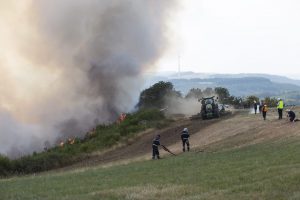 „Wir haben circa acht Hektar Wald, die aktuell vom Brand betroffen sind“, erklärt Gantzer. „Der Waldbrand ist aber mittlerweile (Anm. d. Red.: 18:21 Uhr) unter Kontrolle. Wir hatten anfangs ein paar Schwierigkeiten, zu verhindern, dass sich der Brand weiter ausbreitet, da das Wasser knapp wurde. Doch weitere Wasserreserven wurden herangeschafft. Dafür haben wir uns unter anderem an lokale Bauern und an die Privatgesellschaft Reiff von Ulflingen gewandt. Sie haben uns fünf Lkw mit knapp 19.000 Litern Wasser zur Verfügung gestellt. Es hat knapp drei Stunden gedauert, den Brand zu kontrollieren.“ Die Löscharbeiten werden wohl noch bis in die Morgenstunden andauern