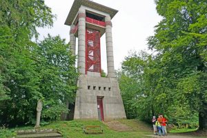 Der Aussichtsturm auf dem Berg bietet die Gelegenheit für einen Zwischenstopp. Wer im Turm die 162 Stufen hoch schafft, dem bietet sich ein herrlicher Ausblick tief ins Land hinein. Aber der Turm und „Berg“, das sei doch schon Düdelinger Gelände? – Das störe ihn nicht, sagt Gryseleyn. Andere Wanderungen seiner Amicale führten ja auch über Rümelingen. Er sehe das nicht so eng, meint er lächelnd.