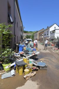 Luxemburg hat in der vergangenen Woche eine Naturkatastrophe erlebt, die die Betroffenen wohl noch Monate und Jahre beschäftigen wird. Die Schäden, die das sich zurückziehende Wasser preisgibt, sind enorm. Ganze Häuser standen unter Wasser, Autos wurden weggeschwemmt, Hausrat völlig zerstört. In vielen Gemeinden dreht sich nun alles ums Aufräumen – so etwa in Echternach und in Rosport-Mompach.