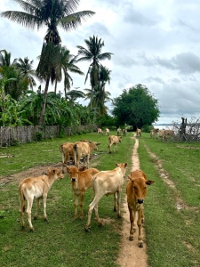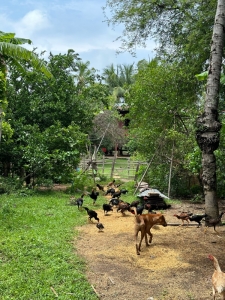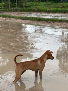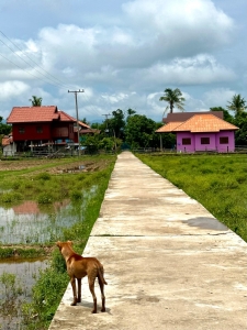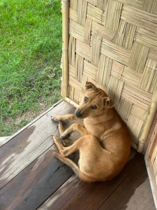 An einem Tag mache ich einen langen Spaziergang, der mich über die gesamte Insel führt. Begleitet werde ich von dem Hund des Gasthauses. Er läuft immer einige Schritte vor mir und gibt mir so das Gefühl, dass er mich über die Insel leitet, auch wenn er zwischendurch in fast jeden Garten eindringt und dort die Hühner aufscheucht oder die Hunde anbellt. Zusammen durchqueren wir Laub- und Bambuswälder, Reisfelder und kleine Dörfer. Ich sehe, wie Einheimische fischen und auf den Reisfeldern arbeiten. Manchmal laufen mir ganze Horden von Kühen oder Büffel entgegen. „Bist du alleine unterwegs?“, fragt mich ein Mann, als ich eine Flasche Wasser kaufe. „Nein“, antworte ich und deute auf den Hund. Er hat es sich zur Aufgabe gemacht, auf mich aufzupassen. Alle paar Schritte dreht er sich um und geht sicher, dass ich ihm noch folge. Auch nach dem Spaziergang will er nicht von meiner Seite weichen. Er wartet immer vor der Tür meines Bungalows auf mich und versucht sogar stur, in mein Bett einzuziehen. Als ich im Boot auf dem Weg zurück aufs Festland sitze, versucht er mir nachzulaufen. Sein Bellen höre ich noch lange. Ich frage mich, ob er weiß, dass er mich nie wieder sehen wird.