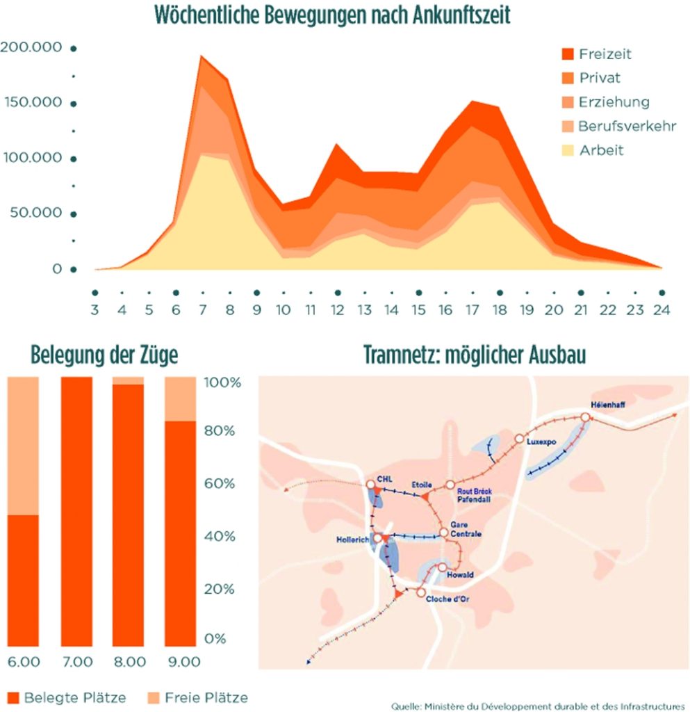 Das Modu-2.0.-Konzept begnügt sich nicht mit der Festlegung von Zielen bis 2025, sondern hat auch Ziele für 2035 festgelegt. Es genüge nicht, wie bislang mit Baustellen den Staus „hinterherzuarbeiten“, sondern vielmehr müssten die Voraussetzungen geschaffen werden, den Verkehr langfristig in den Griff zu bekommen. Hierzu gehören zum Beispiel auch das Projekt einer schnellen Tramverbindung Esch-Luxemburg (eine entsprechende Studie wird am 11. Juni vorgestellt) und der weitere Ausbau des bestehenden Straßenbahn-Systems.