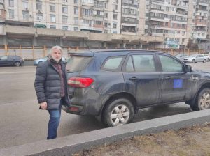 Was vermisst er am meisten? „Das gewohnte Umfeld, Freunde aus dem Künstlermilieu, Jazzabende, Kiew, die Lebensweise, das Stadtzentrum, die Metro, das Chaos – und vor allem den deutschen Stammtisch, den ich jahrelang organisierte.“ Viele Bekannte sind geflohen, Wehrpflichtige blieben. „Glücklicherweise habe ich noch mit vielen Kontakt, wenn auch meist sporadisch.“
