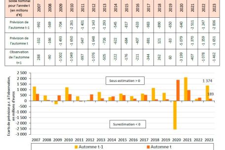 Und die vom CNFP vorgelegte Untersuchung der Jahre 2007 bis 2023 deutet auf eine wirkliche systematische Verzerrung bei der Planung des Staatshaushaltes hin. Der Saldo (das Ergebnis von Einnahmen minus Ausgaben) wurde im Durchschnitt bei der Vorstellung des Budgets für das nächste Jahr jeweils um 523 Millionen Euro zu negativ eingeschätzt.