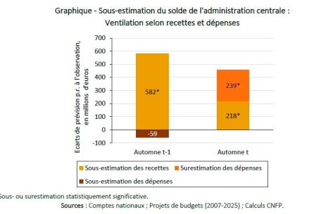 Laut CNFP beruht diese systematische Fehleinschätzung vor allem auf zu pessimistischen Erwartungen bei den Einnahmen. Die Prognosen, die jeweils im Herbst vor dem betreffenden Haushaltsjahr aufgestellt werden, unterschätzen die tatsächlichen Einnahmen in den untersuchten Jahren im Schnitt um 582 Millionen Euro. Am meisten daneben liegt die Einschätzung der Unternehmenssteuern, sowie die der Besteuerung von Kapital und der Vermögen.