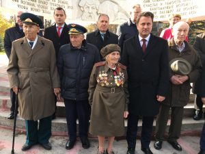 Kriegsveteranen und ein Luxemburger Premierminister. (von links: Ilja Wokin, Clawdja Wassilejwa, Alexander Botner, Xavier Bettel und Jean-Pierre Dohm). Fotos: Lucien Montebrusco