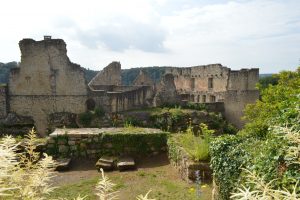 Da wir schon einmal vor Ort waren, machten wir, enttäuscht, wie wir waren, dann doch einen Rundgang durch die Burgruinen, die u.a. dank einer sehr schön angelegten Terrasse in einem kleinen Park zum längeren Verweilen einladen. Zu dem Zeitpunkt waren auch Gäste aus Frankreich, Deutschland, den Niederlanden und Italien auf der Burg.