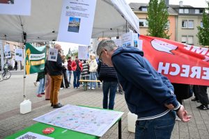 „Zone 30 im ganzen Viertel“, wird auf einem Blatt Papier gefordert, das Vorbeigehende in Gasperich am Freitagmittag an einem Stand des „Interesseveräin Gaasperech“ und des Vereins „Eis Stad“ sehen können. Auf dieser und weiteren Karten haben Anwohner ihre Wünsche für das Viertel notiert – etwa die Neugestaltung der route d’Esch oder einen „sicheren Schulweg mit überall ausreichend breiten Gehwegen.“ Vorgestellt wird an diesem Tag ein Mobilitätsplan, an dem beide Vereinigungen seit über eineinhalb Jahren gemeinsam mit rund 60 Leuten aus der Bevölkerung arbeiten – speziell für Gasperich.