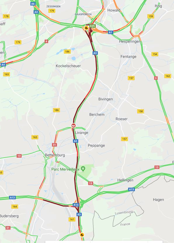 Ab 16h00 schons Stau ob der A3 bis zereck ob Gasperich !