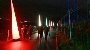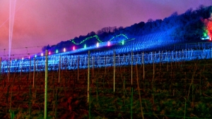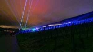 In Kooperation mit der Gemeinde Wormeldingen fand am Wochenende die dritte Auflage von „Wine Lights Enjoy“ statt, mit einem genussvollen Rundweg durch die Rebanlagen zwischen Ahn und Wormeldingen. Dort, wo die Winzer ansonsten ihrer mühevollen Arbeit nachgehen, tauchten Skybeamer, LED- und Videoinstallationen die Kulturlandschaft Mosel in ein buntes Lichtermeer.