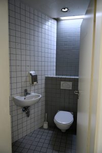 Während man sich zusehends besser fühlt, schweift der Blick durch diese spartanisch eingerichtete Zelle. Hier kann wohl nur, wer wirklich muss. Freude kommt bei der Inneneinrichtung nicht auf. Und Klopapier fehlt auch. Wie war das mit dem „selbstreinigend“ eigentlich genau gemeint?