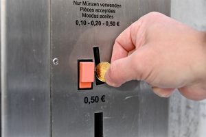 Lieber nicht ausprobieren. 50 Cent sind hier also für 15 Minuten stilles Örtchen zu zahlen. Die sollte man irgendwie als Kleingeld dabeihaben. Karte oder Scheine nimmt die Maschine nicht an. Vom stärker werdenden Druck der Blase getrieben, sucht man hektisch nach einem 50-Cent-Stück oder nach 10- oder 20-Cent-Stücken. Und dann: Sesam öffne dich!
