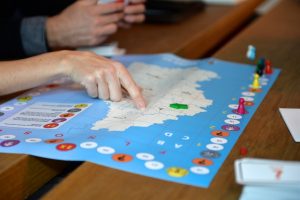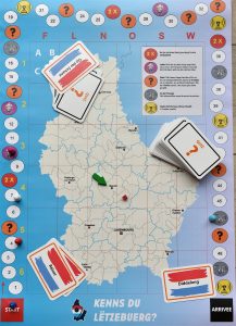 Die Spielregeln sind einfach zu verstehen. Spätestens nach der zweiten Runde weiß jeder, wie die Punkteverteilung funktioniert. Als die erste Karte gezogen wird, herrscht erst einmal Ratlosigkeit am Tisch. Wo zur Hölle liegt „Rëmeljen“? Fünf von sechs Spielern haben keinen blassen Schimmer. Gut, dass die Spielerin, die gerade dran ist, dort aufgewachsen ist.