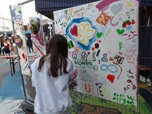Für das Festival haben sich die Verantwortlichen des „Péitrusshaus“ etwas Besonderes einfallen gelassen. Auf große Leinwände schrieben oder malten die Besucher, was ihnen zum Wort „Familie“ einfiel. Heraus kamen bunt verzierte Wörter wie „Love“ und „Respect“, aber auch Namen von Nahestehenden und kleine Zeichnungen.